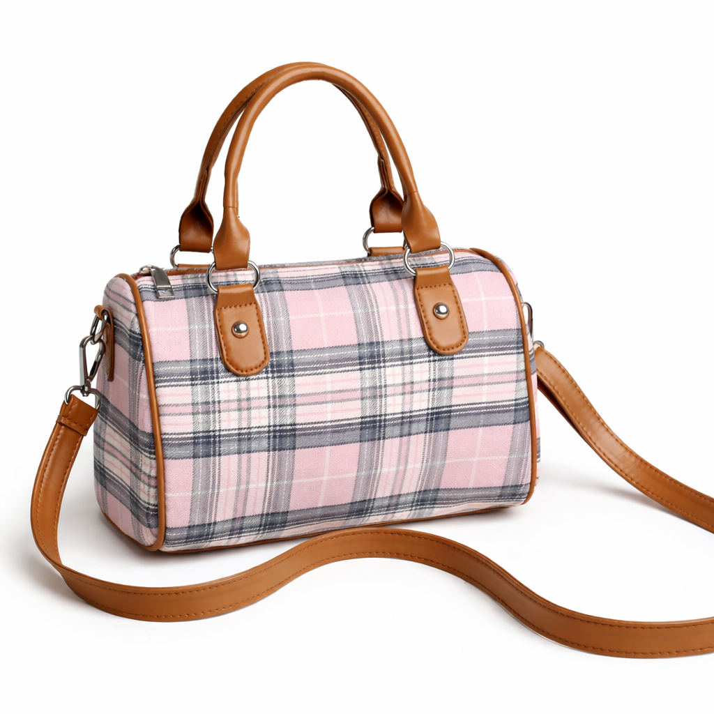 Plaid Academy Round Barrel Bag