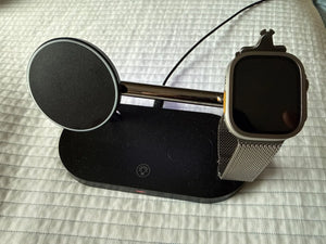 Unlike others, MagCharge Dock Pro combines precise MagSafe alignment, watch-safe charging, and a dedicated AirPods Qi pad for a single tidy station that saves time and space.