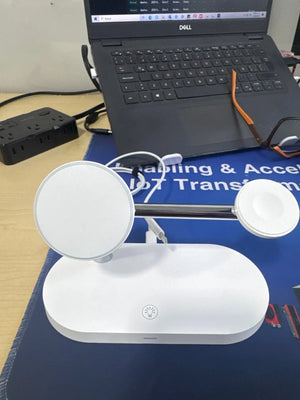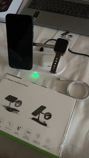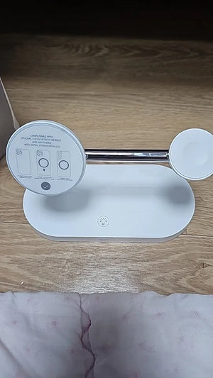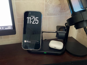 Fast, tidy charging station for phone, watch and earbuds to simplify your daily routine and workspace